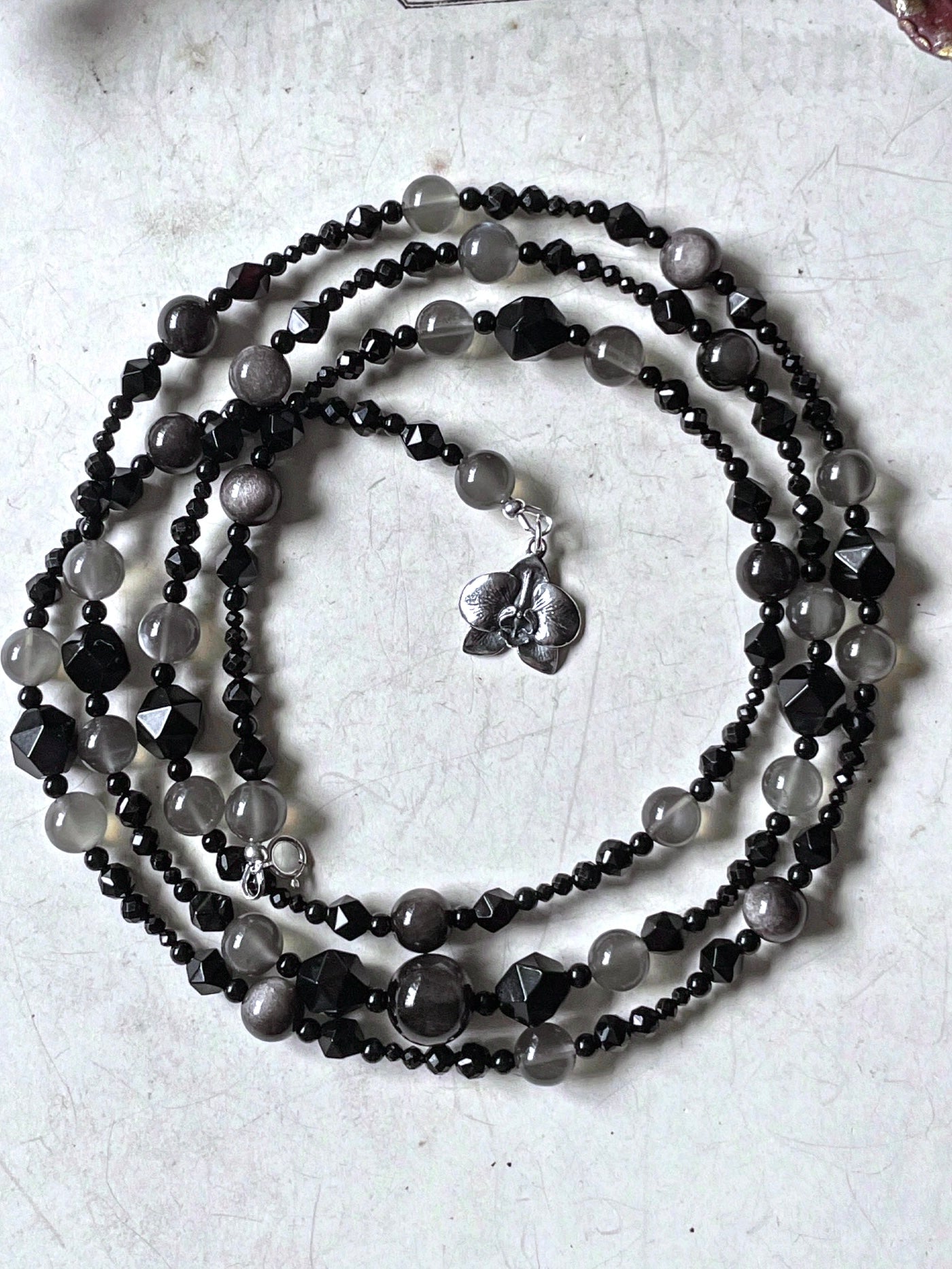 Made of glittering onyx and spinel, silver sheen obsidian, and black moonstone -- all of which nod to parts of Shadowheart's story.